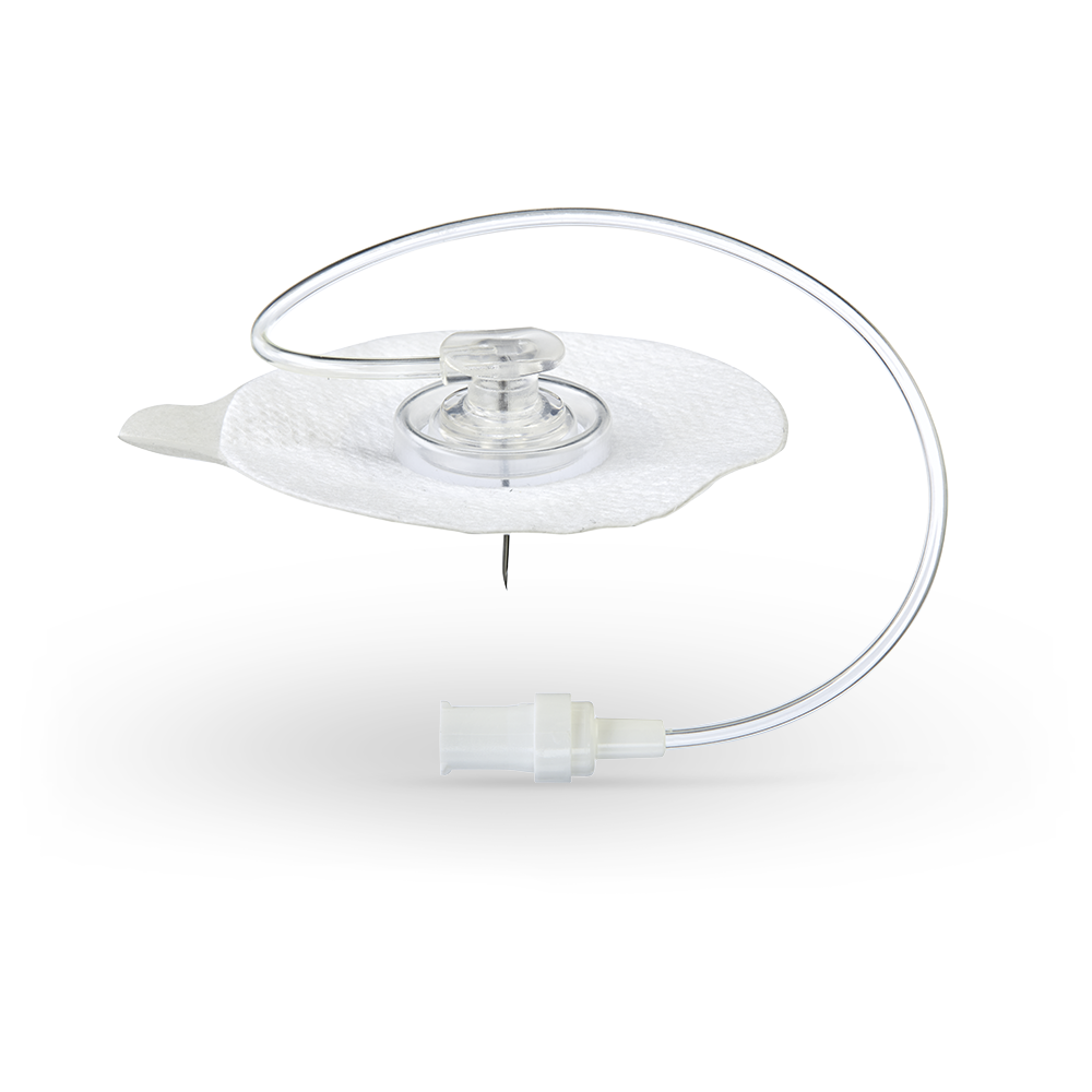 - Sicherung der Portkanülenposition durch integriertes Klebeadhäsiv